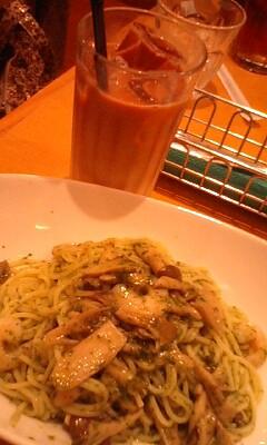 ちょっと遅いお昼ご飯はジェノベーゼを食べた。あとロイヤルミルクティ。