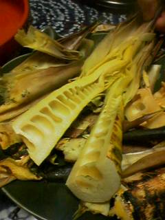 左はたけのこです。まるごと焼いたのなんて頻繁に食べられないよねえ…?